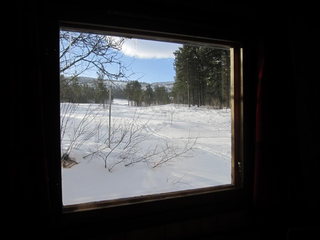 Aussicht vom Wohnzimmerfenster mit Langlaufspuren von meinem Onkel und mir